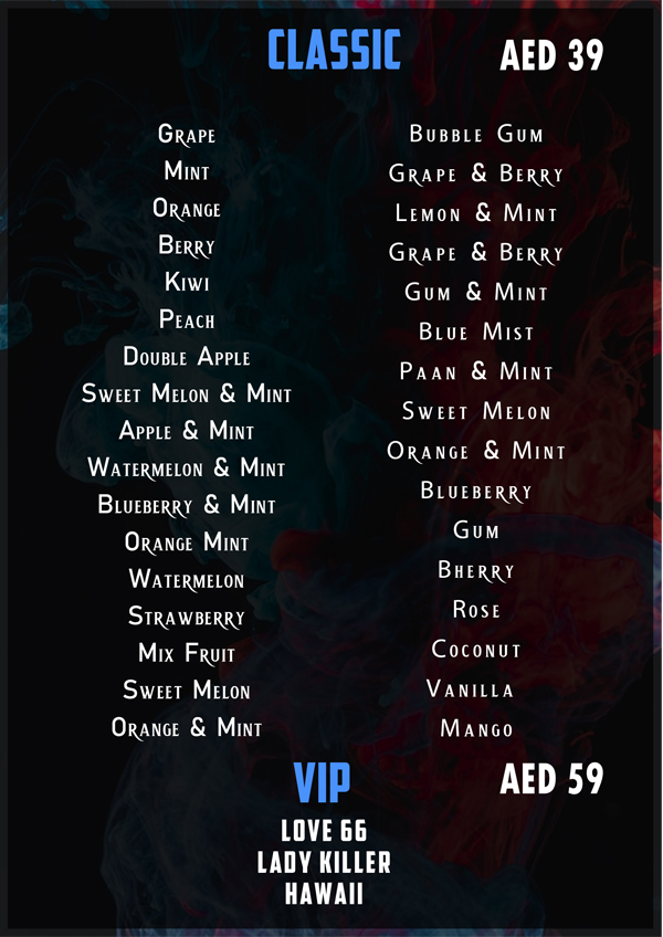 Sheesha Menu